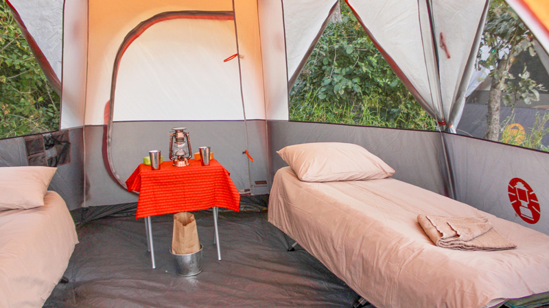 Lägret är mycket bekvämt med luftiga tält med full ståhöjd, bekväma sängar, toalett tält och hinkduschar.