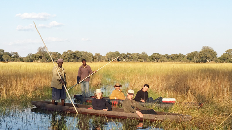Lägret transporteras med hjälp av lokalbefolkningen i deras mokoro kanoter, som helt enkelt är urholkade trädstammar. Vilket är perfekt då de känner deltat utan och innan. Är vatten nivåerna för låga så fraktas utrustningen med hjälp av åsnor. Möjligheten att flytta lägret är en succefaktor då du kan se till att vara där det är mest vilt.