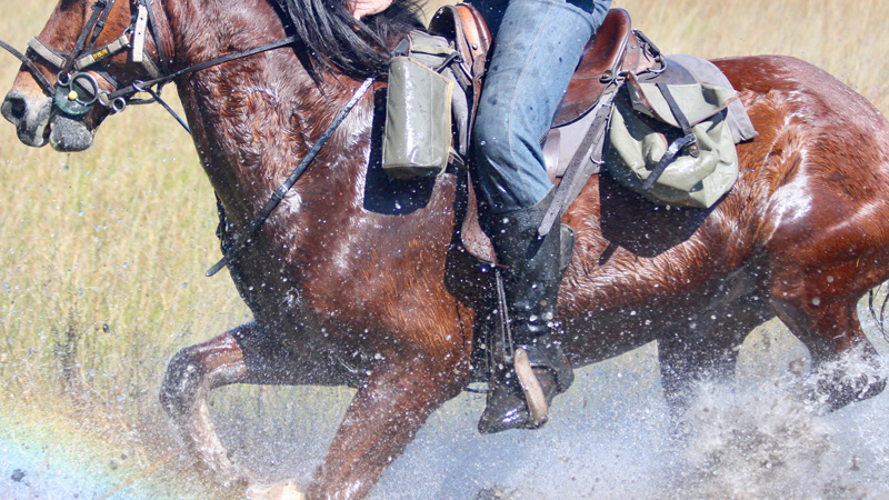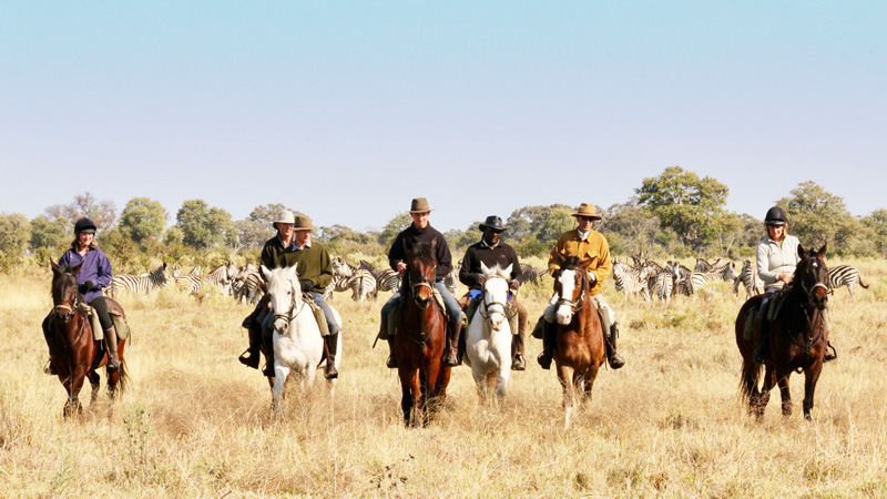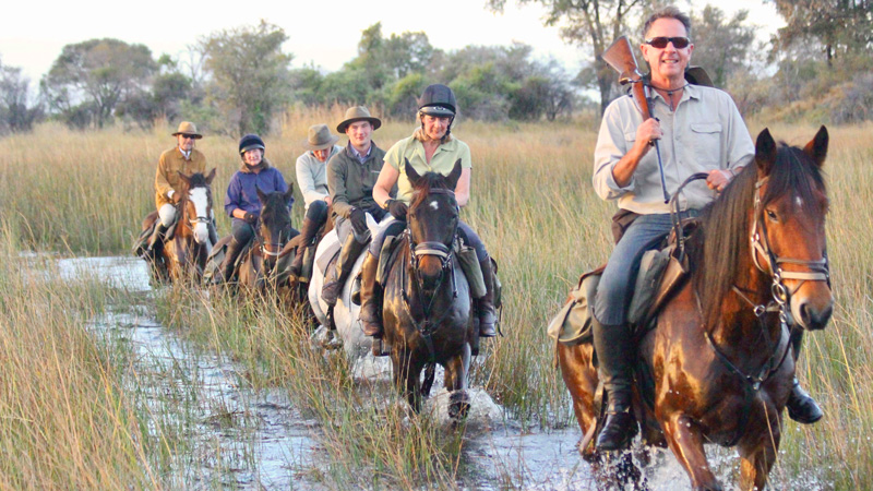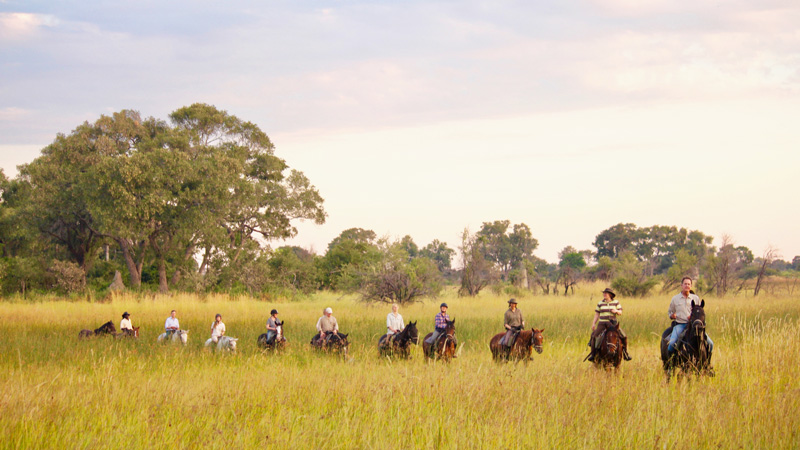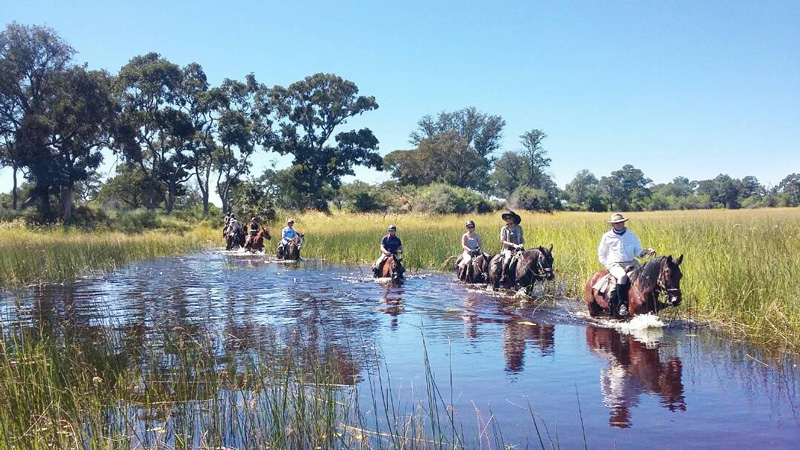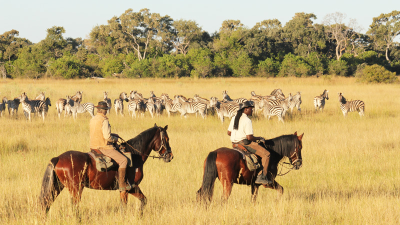 När översvämningarna sprider sig ner i Kalahari-öknen följer de vilda djuren och fåglarna med och upplevs självklart som bäst från hästryggen. Denna Okawango hästsafari skiljer sig från de övriga då du istället för att bo i ett permanent läger bor i ett mobilt tält-camp. Lägret transporteras med hjälp av lokalbefolkningen i deras mokoro-kanoter, som helt enkelt är urholkade trädstammar. Vilket är perfekt då de känner deltat utan och innan. Är vatten nivåerna för låga så fraktas utrustningen med hjälp av åsnor.