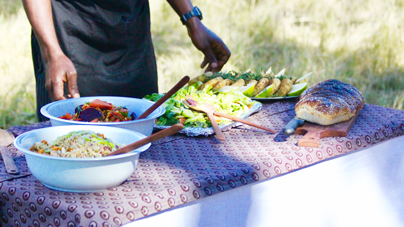 Alla måltider tillagas över öppen eld i lägret och du kommer att bli förvånad över mångfalden och kvaliteten på måltiderna.