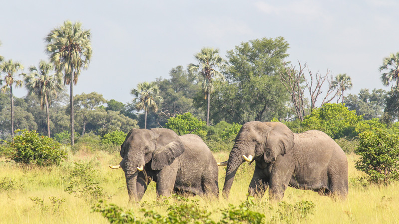 Annars börjar dagen med en tidig väckning i form av att du serveras en kopp varmt kaffe eller te och en lätt frukost runt lägerelden samtidigt som de första solglimtarna tittar fram. Detta är den bästa tiden att se många av de vackra vilda djuren. Ni följer spåren av elefanter, söker efter en mängd olika vilda djur, njuter av det fina fågellivet och galopperar genom de nyligen översvämmade slätterna.
