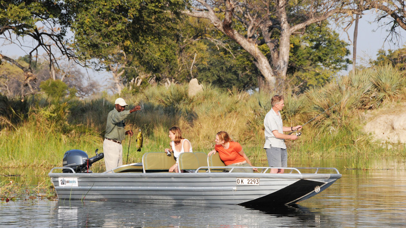Fiske, från båt eller land, är enormt populärt bland både ridande och icke-ridande gäster. Här finns ett brett utbud av vackra fiskeplatser där gästerna kan fiska mellan näckrosor och flodhästar. Utmaningen är inte bara att få en fisk att bita, men att få fatt i den innan en kungsfiskare tar den i farten.