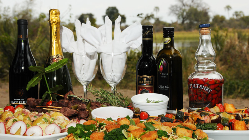 En bra lunch serveras varje dag - du behöver det för att orka med alla aktiviteter - kycklingpaj är en favorit och vin serveras alltid för att uppmuntra till en siesta före te och kaka. Eftermiddagsaktiviteterna är lugna och inkluderar ofta mokoro-turer (kanoter) som används av de lokala fiskarna i deltat - som gör att du kan ta dig över översvämmade gräsöar. Detta är det perfekta tillfället att ställa frågor och ta bilder. Krokodil observationer är inte sällsynta och fågellivet är ett av de bästa i världen. Sundowners serveras ofta i bushen innan det är dags att återvända till campen för en dusch. Middagen är alltid speciella på Macatoo, men det finns ingen garanti för att den alltid intas på samma ställe .......