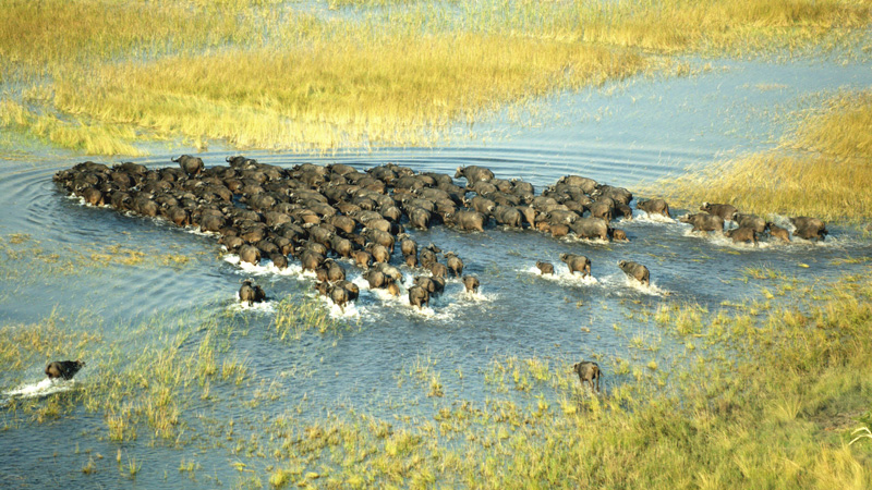 Vatten: Okawangos årliga flodvatten anländer normalt i maj eller juni. När vattennivån stiger går det att åka båt kanot (mokoro).