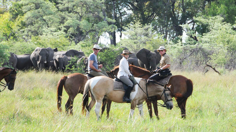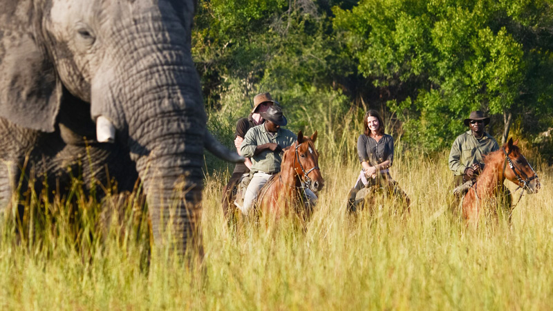 Det finns inget bättre sätt att få uppleva Okawango Deltat på, än på hästryggen. Att Deltat är ett av Unescos världsarv kommer du snabbt förstå. Den årliga översvämningen av området lämnar stora delar av Deltat otillgängliga för fordon, vilket gör hästar till det mest naturliga och bästa sättet att ta sig fram på. Ridtempot varierar mellan snabba och spännande galopper tillsammans med giraffer, zebror och antiloper, i vatten och på land, och att andäktigt stillastående iaktta t.ex. bufflar och elefanter. De erfarna guiderna är fulla av fascinerande berättelser om det ständigt föränderliga landskapet, dess flora och fauna, och har en otrolig förmåga att upptäcka även de bäst kamouflerade djuren.