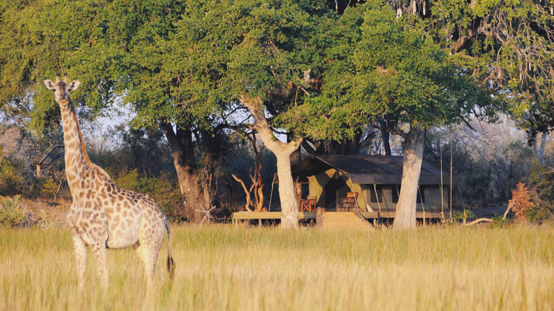 Dag 1: Du blir mött på Mauns flygplats och får hjälp med att hitta det mindre planet som tar dig till campen (antingen en Cessna 206 eller 208). Flygturen tar cirka 30 minuter och du får se deltat från ett fågelperspektiv - det är fantastiskt hur små elefanterna ser ut från luften. En jeep väntar på dig vid landningsbanan för att ta dig de sista 45 min. till lägret – eller en spännande båttur (beroende på årstid). Väl framme välkomnas du med en drink. Efter att du har installerat dig i ditt tält bjuds du på eftermiddagste och hemlagad kaka under en briefing från din guide. Därefter blir det en bushwalk med din guide och du får njuta av den vackra solnedgången och kan få ut det mesta av de fotomöjligheter som erbjuds av kvällsljuset. Efter en varm dusch, serveras drycker och tilltugg i den bekväma cantinan innan en god middag serveras.