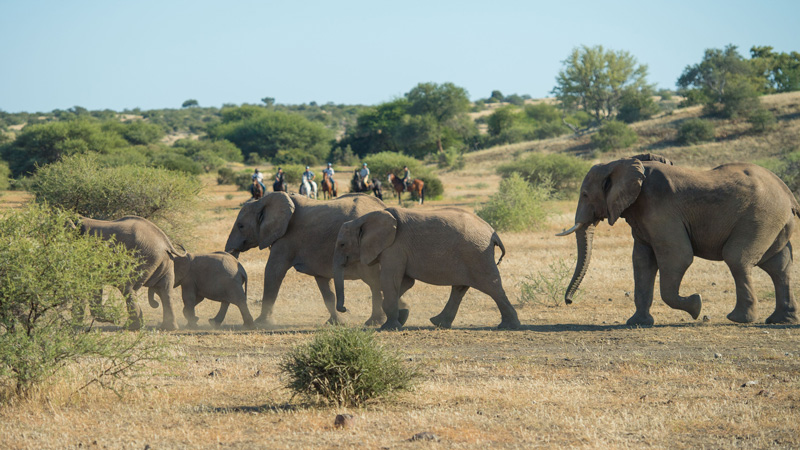 Dag 6: Dagen lovar spännande ridning upp och ned längs Pitsane River Valley med kända vattenhål där djur samlas. Ritten avslutas vid den lyxiga Two Mashatus camp, där ni välkomnas med drinkar vid poolen. Efter ett par timmars avkoppling och kanske en massage, åker ni ut på en tur för att få ytterligare en möjlighet att fotografera elefanter som det finns gott om i detta område.