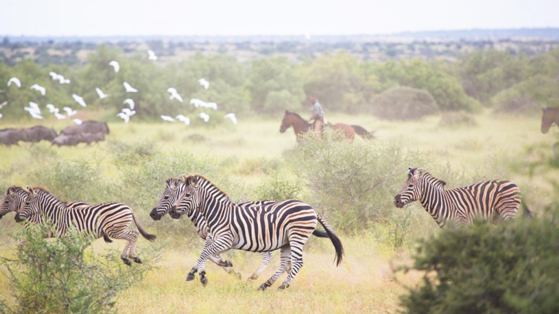 Det finns ca 50 hästar, främst boerperd, fullblod, varmblod och arabkorsningar. Sadlarna är bekväma McClellan trail sadlar som lämpar sig för långa dagar i sadeln.
