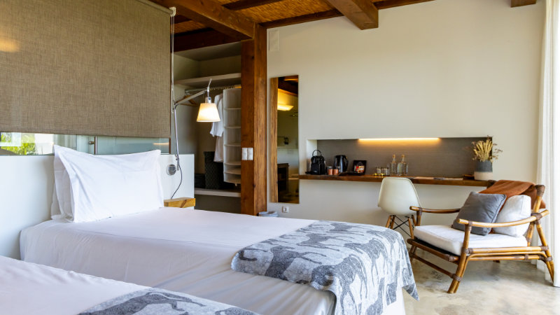 Diogo har byggt ett exklusivt litet hotell där han inte sparat på något, och varje detalj är noga genomtänkt. Det består av sju exklusiva deluxe-rum på 25 m2 och två standard-rum på 20 m2.