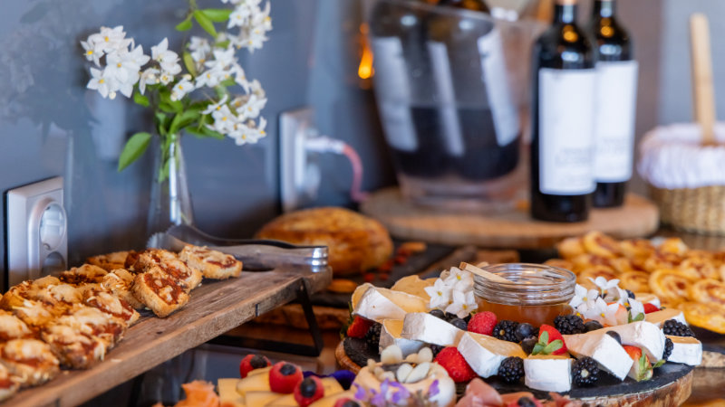 Maten är även den av högsta kvalitet och lagad med finess. Frukostbuffén har allt du behöver för att få energi till din lektion. Lunchen består ofta av en matig salladsbuffé, och till middag bjuds du på en välsmakande buffé. Självklart serveras måltiderna med ett gott lokalt vin.