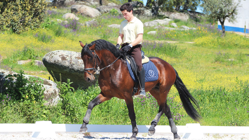 Kärleken till den vackra lusitanon genomsyrar hela den vackra haciendan. Under tjugo år har Diogo och hans familj bedrivit avel med målet att föda upp vackra och trevliga hästar med utmärkta gångarter och hög ridbarhet. Framgångarna på tävlingsbanan visar att de lyckas.Här får du rida på dressyrhästar av högsta kvalitet. Varje år föds det flera kvalitetsföl, så det finns hästar i alla åldrar och utbildningsnivåer.