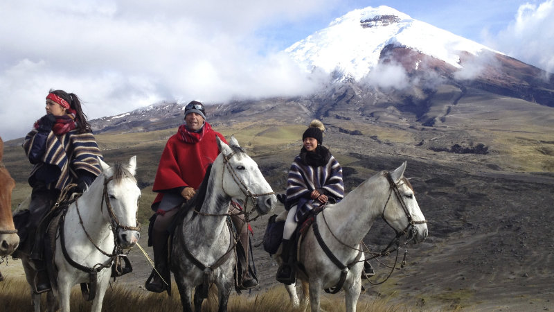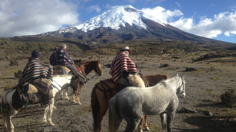 Den andra delen av ritten besöker ni den färgglada marknaden i Machachi på er väg där du kan njuta av den unika skönheten på en marknad i anderna samt få möjlighet att köpa hantverk eller läderverk. Ni fortsätter sedan ritten till Cotopaxi, den högsta aktiva vulkanen i världen (5.987m). Cotopaxis imponerande symmetriska kon leder er framför sina omgivande kullar. Ni rider runt Rumiñahui massiva stenar och till slätterna nära Cotopaxi.