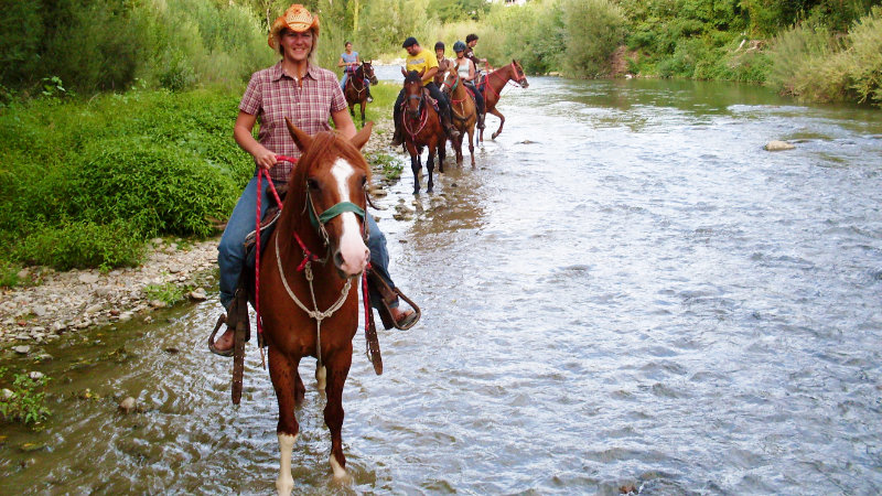Ridning: 2-3 timmar/dag, western, uteritter och lektioner med samma boende hela veckan.