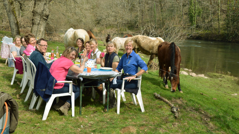 Dina värdar, Cate, Derek och Amanda, är britter men har bott i Frankrike i många år. Denna ridsemester är bekväm och mysig med en familjär stämning, alla gäster blir sedda och väl omhändertagna. All mat och dryck ingår.