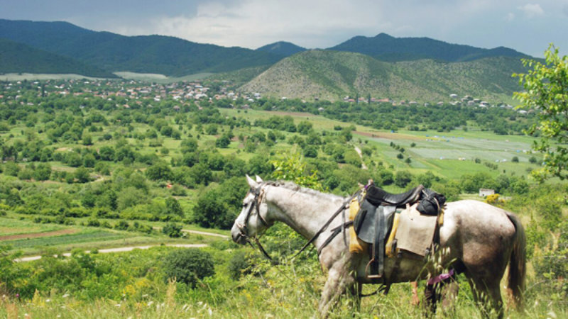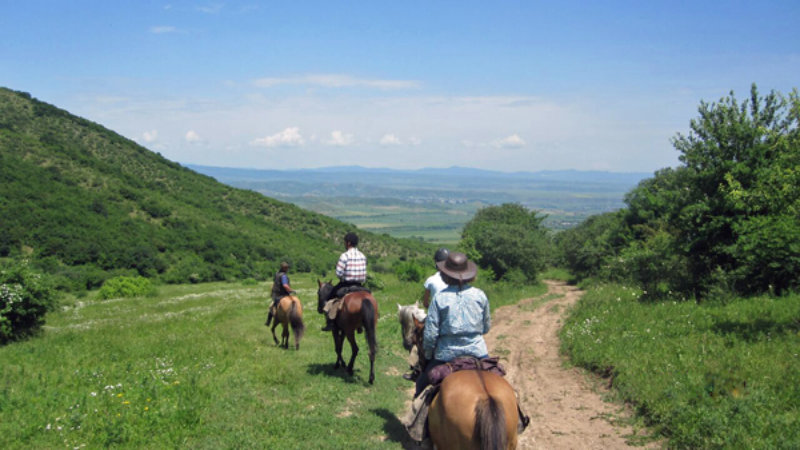 Dag 3 - Efter en tidig frukost hämtas ni från hotellet och körs cirka 1 timme till stallet nära byn Asureti för att träffa hästarna och guiderna och förbereda er för ritten. Ni börjar att rida mot byn Asureti och sedan genom låglandet och foten av skogar med ek och avenbok. Fortsätt genom dalar av vilda blommor och öppna ängar, korsa floden Algeti och stanna sedan för en picknicklunch vid byn Golteti (ca 3 timmars färd) och på eftermiddagen vidare mot den lilla staden Tetri Tskaro (Vita våren), upp i de skogsklädda kullarna till byn Gudarekhi, där lägret är uppställt, med sitt 1500-talstorn och en härlig utsikt över Algeti-dalen. Middag och natt i lägret (ca 3 timmars färd).