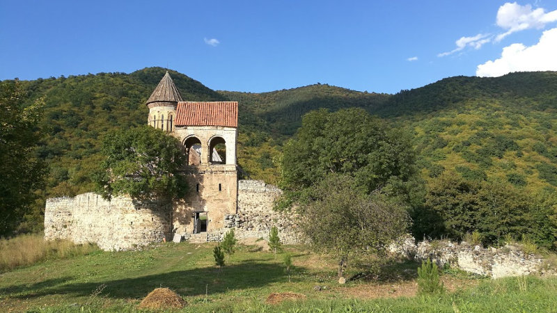 Dag 8 - Frukost innan ni rider vidare från Ukangori genom skogen till de azeriska herdarnas sommarhagar och vidare i riktning mot den lilla staden Poladauri. Ni rider genom skogen kommer nära den lilla staden Poladauri där ni stannar för lunch (cirka 3 timmars ritt). På eftermiddagen (cirka 2,5 timmars titt) till St Tevdore kyrkoruiner, genom skogen och sedan akacia spinneys som nynnar av bin och låg skog. Sedan öppnar sig landskapet mot 1200-talsklostret Tsugrugasheni på kullen, som du har chans att besöka och se vackra sniderier och fantastisk utsikt över dalen. Efter besöket i klostret fortsätter turen till St Tevdore kyrkoruin där närliggande läger kommer att slås upp. Middag och natt i lägret.