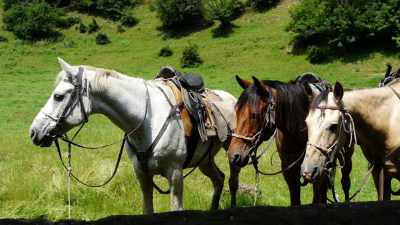 Hästarna är fullblod korsade med araber och akhal-teke, lokalt uppfödda. De är normalt 150-160 cm i mankhöjd, lyrhörda och framåt men också anpassningsbara och väl lämpade för terrängen. Ryska militärsadlar och några westernsadlar finns tillgängliga, men bara grundläggande utrustning används. Hästarna rids oftast med tränsbett och sadelväskor finns.