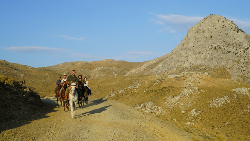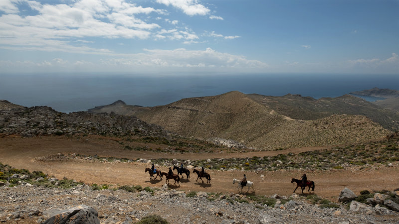 Ridturerna tar dig genom den spektakulära naturen kring Asterousia-bergen, med vackra vyer över dalar, klippor och kusten vid Medelhavet. Ni rider genom pittoreska byar, olivlundar och längs gamla stigar som har använts i århundraden. Veckans highlight är en tvådagars långritt med övernattning ner till Medelhavet.