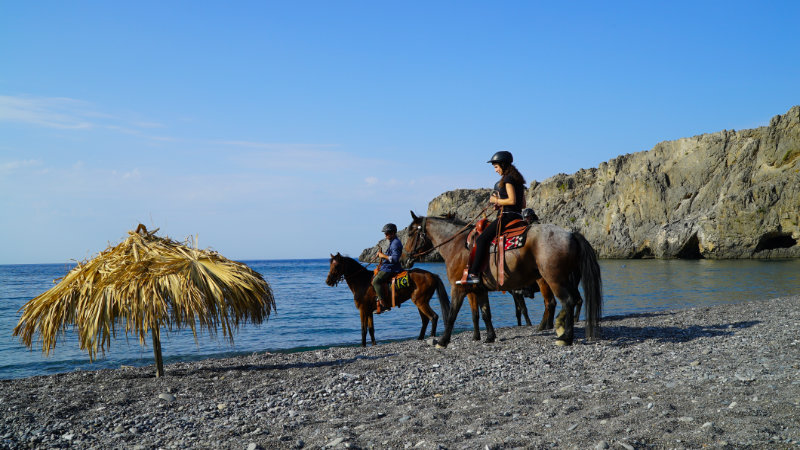 Runt gården finns miltals av gamla stigar och vägar som gjorda för att utforska den spektakulära naturen på hästryggen. Du kommer att rida genom pittoreska byar, olivlundar och längs gamla stigar som har använts i århundraden. På veckoritten kan ni rida i väg på en tvådagarstur ner till havet och bo på ett kloster och äta middag med munkarna, och om vädret tillåter kan du bada med din häst.