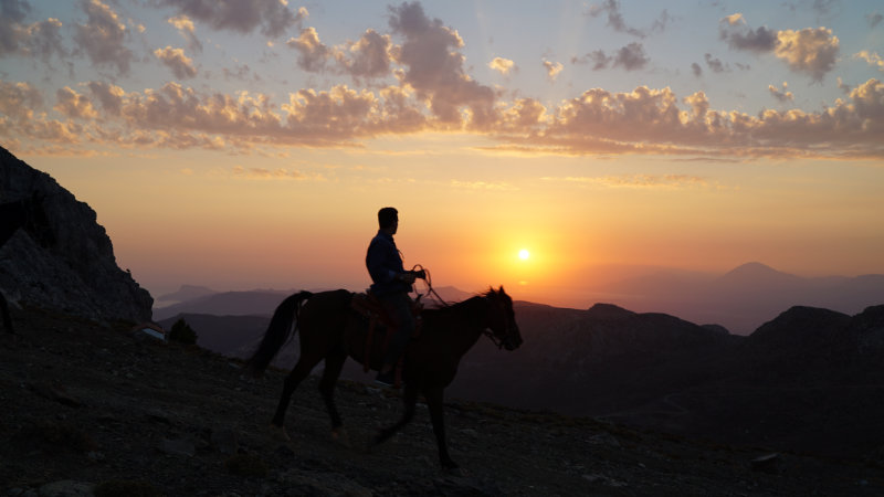 Dag 2: Efter en härlig frukost promenerar du ner till stallet (ca 10 minuter) där ni sadlar era hästar för att rida mot Kofinas. Ni rider genom får- och getbetesmarker med utsikt över Massara-slätten och Kretas högsta berg, som ibland är snötäckt ända fram till tidig sommar. Ni gör ett långt lunchstopp vid ett vackert kapell med uråldriga olivträd. Ni kommer också att passera två andra kapell och några minoiska ruiner. På återvägen kan ni njuta av det fantastiska panoramat av berg och hav. De som vill kan också ta sig till fots till toppen av Kofinas för en ännu bättre utsikt. Ridtid: ca 4-5 timmar.