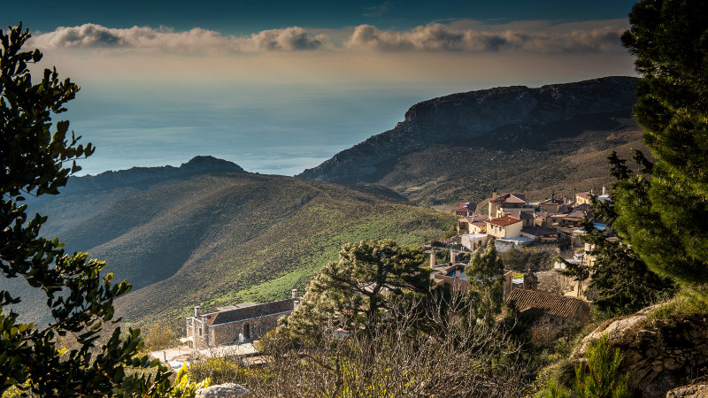 Här har ditt värdpar Popi och Markus under många år byggt upp en elegant by i rustik stil på ett undangömt ställe med en makalös utsikt över mäktiga berg och Medelhavet. De har en sann passion för att bevara det genuina och traditionella både gällandet boende, maten och sin produktion av feta ost, och att dela med sig av detta till en liten skara av naturälskare.