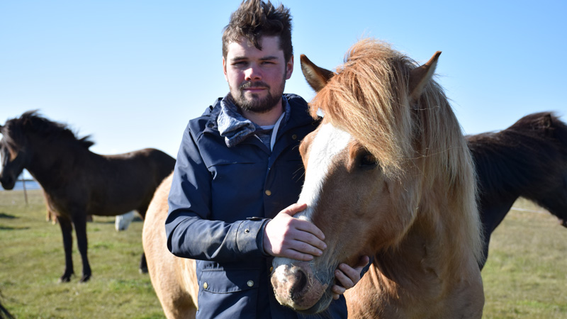 Vi är så glada över att ha hittat Robert, en professionell man som mer eller mindre är född på hästryggen. Han har valt islandshästen som karriär. Under sin uppväxt har han utbildat, fött upp och tävlat. Robert har turen att ha sin bas på familjegården som har 300 hektar mark och där det bedrivs avel av hästar och man har mjölkkor. Gården ligger nära den berömda vulkanen Hekla med sina lavastränder, raviner, vattenfall och oändliga vidder med orörd natur.