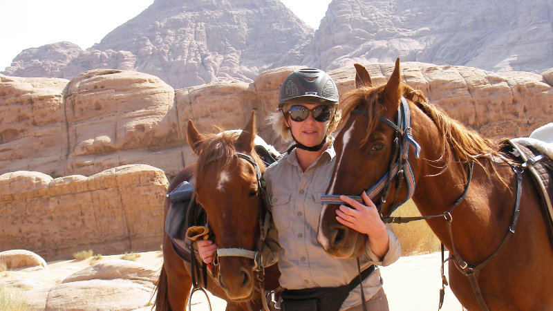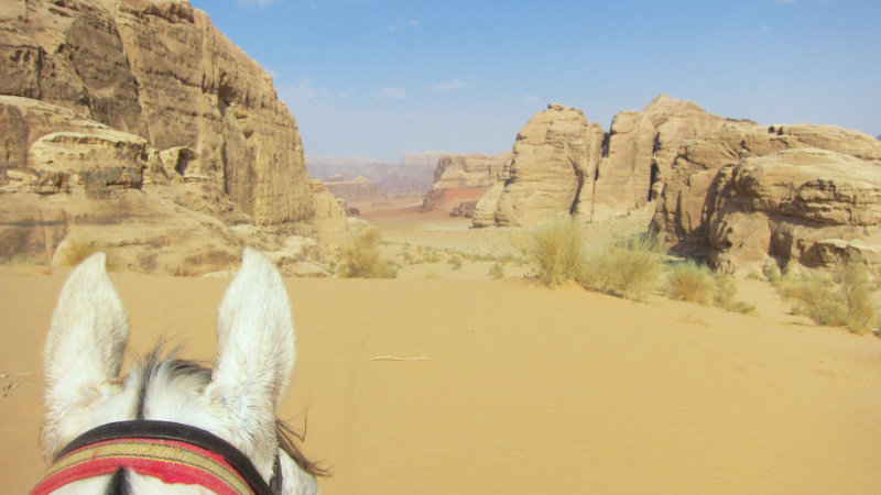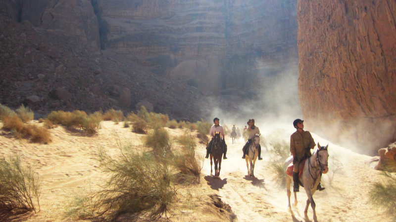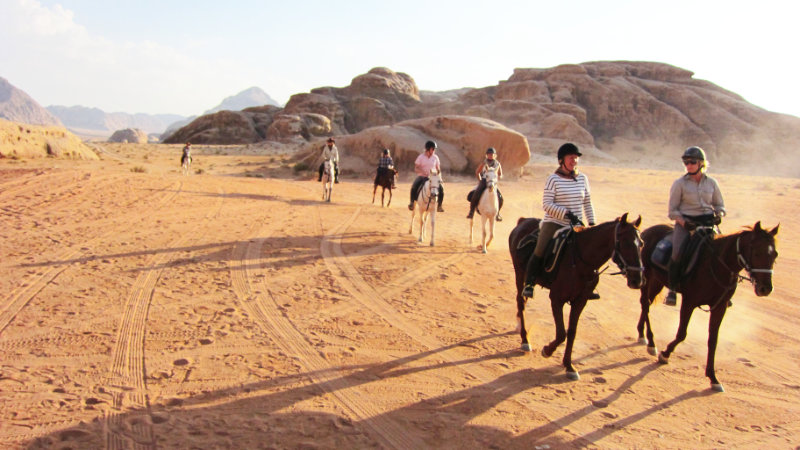 Terrängen: Wadi Rums stora ökenområde är ett fantastiskt annorlunda och vackert område att rida i. Landskapet varierar. Du kommer att rida genom ökenberg, över stora öppna ökenområden, och även genom grönt jordbruksland. Normalt är underlaget bra med hård packad sand.