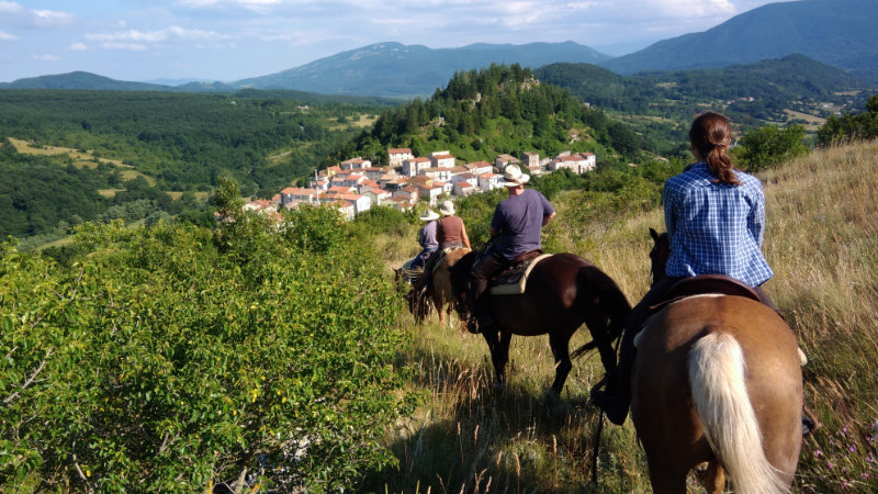 Dag 4. Dagens mål är den lilla staden Pescocostanzo. Ritten tar er genom allt högre berg. Vid slutet av eftermiddagen rider ni genom stora dalsträckor. Efter att ha spenderat ca 6 timmar på hästen kan ni se fram emot en svalkande drink på torget i Pescocostanzo som har flera barer och restauranger. Att ta en promenad i denna pittoreska medeltida stad är trevlig för alla och ett måste för dem som är intresserade av arkitektur. Ni bor på ett litet och mysigt hotell. Middag är på en restaurang.