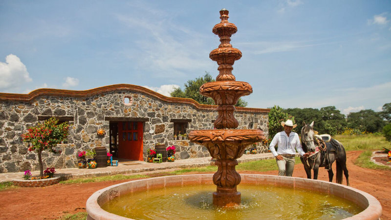 Efter en stadig mexikansk frukost rider ni till den gamla haciendan Tandeje som byggdes 1685. En kullerstensstig tar er fram genom en gammal ekskog där träden tyngs av spansk mossa och gamla rötter som växer mellan stenarna. När ni passerat skogen kommer ni fram till ett vattenfall. Efter lunch passerar ni El Huizachal i den gamla delen av San Agustin Buenavista. Där finns en lienzo ”charro ring” en plats där dom har festligheter med häst. Bakom lienzon har ni en jättevacker utsikt över två av de tre vattenfallen som ligger intill ranchen. Åter på ranchen kan ni slappna av på uteplatsen kanske med en svalkande öl eller en Margarita innan middagen.
