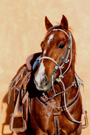 Ridutrustning att låna: Hjälm, sombrero, korta chaps.