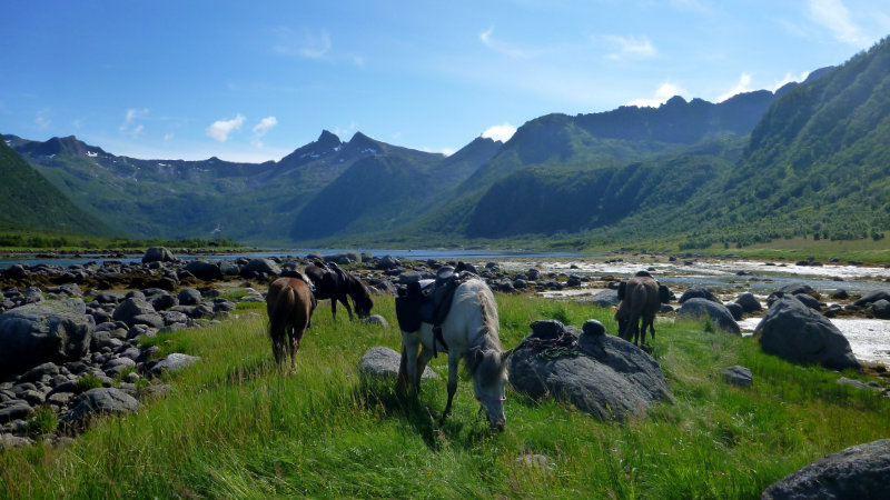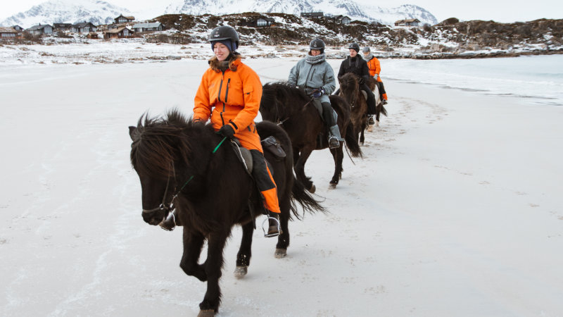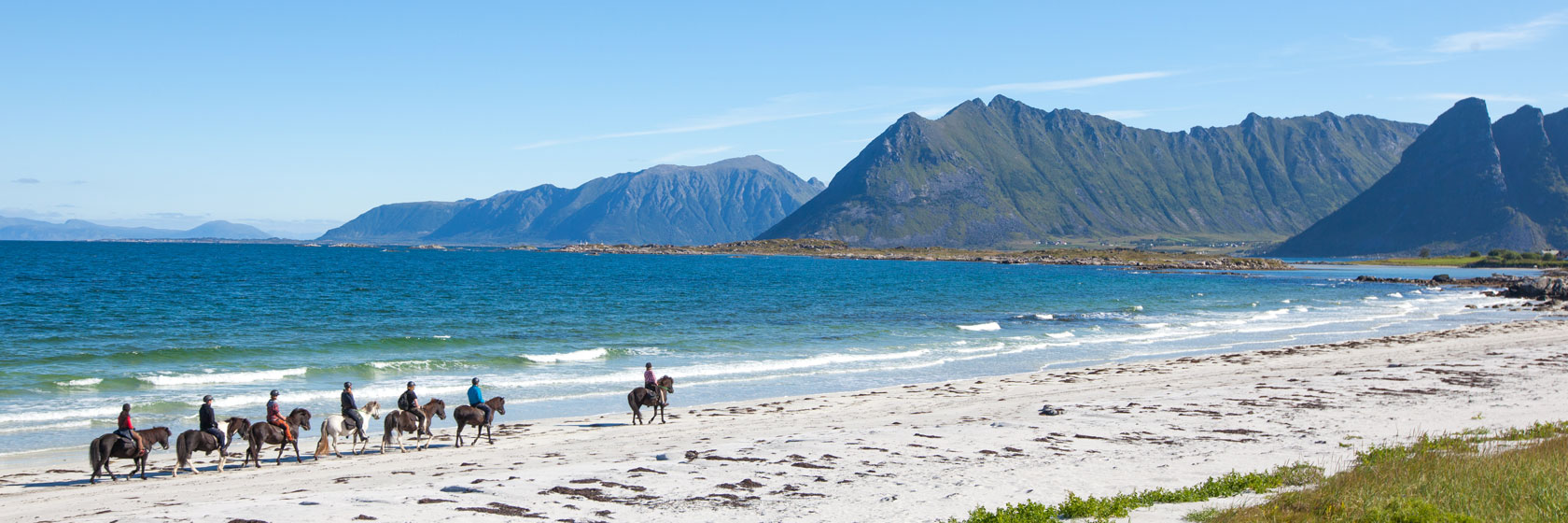 På Långritt i vikingars fotspår får du rida bland berg med vidunderlig utsikt, njuta av de vita stränderna och lära dig lite om geologin och djurlivet på ön och se reliker från vikingatiden. En dag rider ni till en gård som bedriver ett mångfacetterat gårdsbruk med egen ostproduktion, örthage och olika djur. Tillbaka på gården i Gimsøy bjuds du på smakrik och lokal mat förankrad i gårdens historia och mattraditioner.