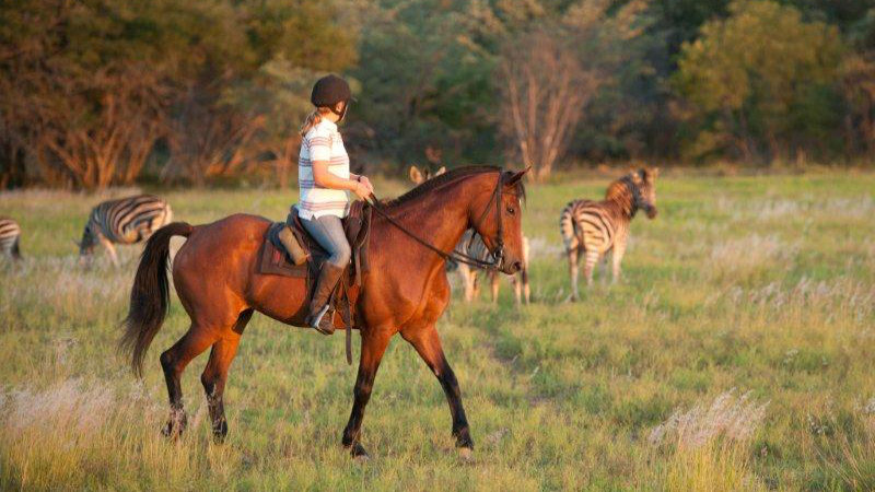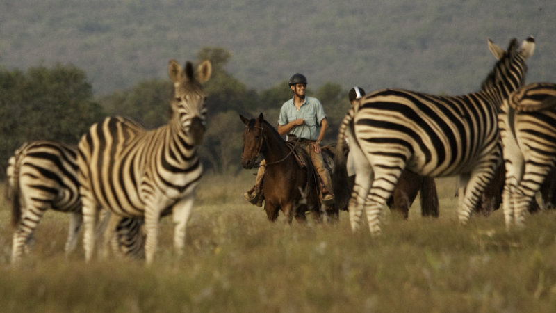 Att simma med hästarna i en av de många dammarna är ett utmärkt sätt att svalka av sig efter en lång förmiddagsritt. På ritterna i detta privata viltreservat kommer du nära vilda djur som giraff, zebra, impala, röd koantilop, eland och rörbock liksom många av de mindre däggdjur som jackal, babianer, apor och vårtsvin. Att få se dessa vilda djur till häst är en djupt berikande erfarenhet då du kan komma närmare än du någonsin trodde var möjligt, då viltet inte upplever hästen som ett hot. Guider visar dig hur man följer djurspår och lär dig lokal bushlore. En ritt till flodhästfamiljen vid sjön är alltid uppskattat.