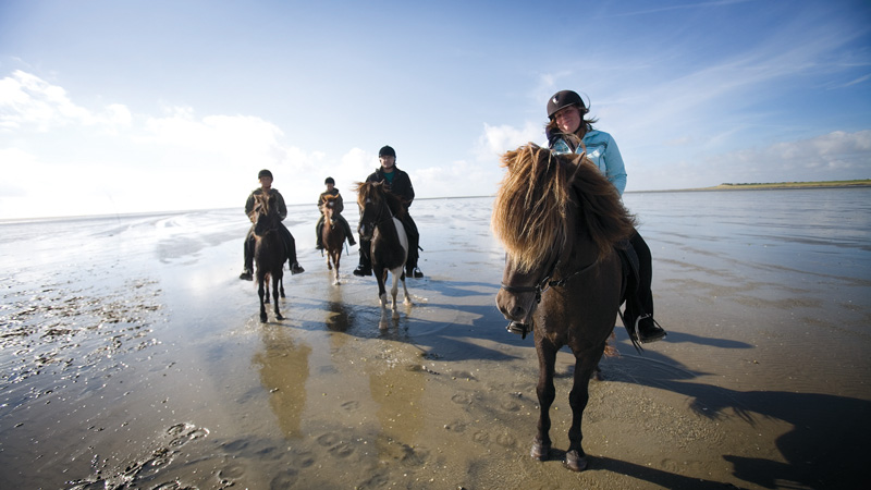 Römö är Danmarks sydvästligaste ö och lättillgänglig med bro från fastlandet. Hela 90% av ön består av orörd natur varav hälften är sandstrand. Det vill säga ett eldorado för ryttare. Här finns faktiskt Nordeuropas största sandstrand. Den är milslång och hundratals meter bred! Du kan tölta och galop...