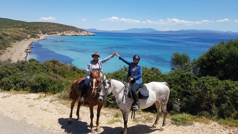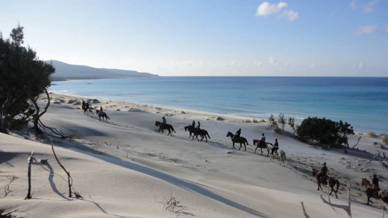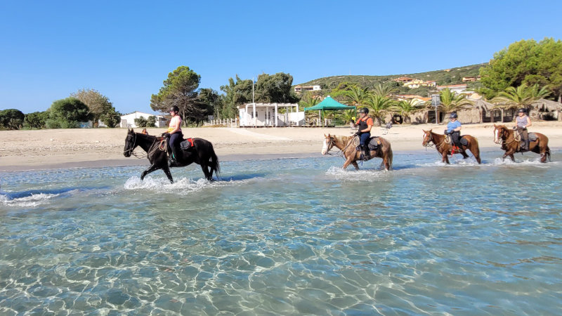 Ni startar ridturen från gården och följer en lokal flod i riktning mot havet på sydkusten och Porto Botte, en blåsig vik särskilt älskad av kitesurfare. Ni når Is Solinas, en annan härlig strand som också är mycket uppskattad bland kitesurfare, rider vidare till den romantiska bukten Su Portu e Su Trigu, och slutligen kommer ni till den mycket kända stranden Porto Pino, som kännetecknas av dess vita sand och sanddyner som är Unescos arv.