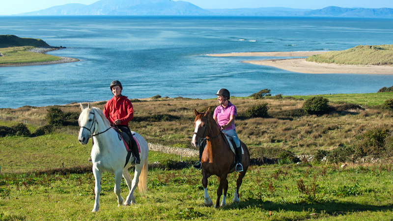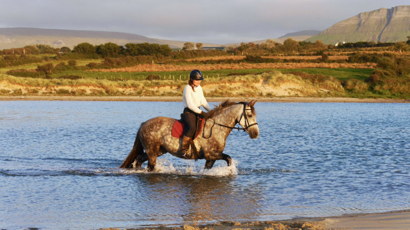 Denna dag är alla ryttares dröm; upptäck de orörda och vidsträckta stränderna på hästryggen! Det kombinerar fartfylld ridning på den vidsträckta stranden nära Streedagh-stranden där 3 Armada-skepp sjönk 1588 och en naturskön skritt över ön med en picknick bland hästarna eller ett stopp i byns kafé för mat (tidvattnet avgör vilka alternativ fungerar bäst). Känn spänningen av att korsa en atlantisk kanal till O'Connor's Island, sälar och flyttfåglar kan ofta ses i lagunen. Ni kommer in i den magiska världen på familjens privata ö och ni får se deras gamla hembygd. Följ de smala stigarna när du korsar konturerna av det stora sanddynsystemet, där natursköna utsiktspunkter dyker upp mellan sandkullarna. 360 grader av fantastisk utsikt vid horisonten – det är vackert. Detta område med särskilt bevarande är rikt på biologisk mångfald, bara de tuffaste växterna överlever exponering för de salta vindarna här, så det påminner om de vilda blomsterängarna i de höga alperna. Familjens boskapsbesättning strövar omkring på ön och du kanske träffar några hästar på deras semester vid havet. Din häst kan njuta av det salta ö-gräset medan du kopplar av, ta ett mellanmål bland hästarna och utforska platserna för det gamla gårdslivet på ön. Avgångstid beror på tidvattnet.
