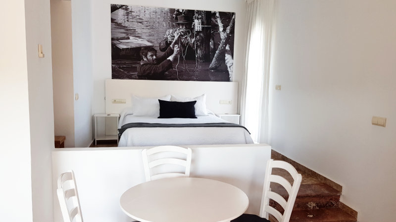 Du bor på hotell i dubbelrum med eget badrum och de är idealiskt beläget nära stranden (5 -10 minuters promenad) och ligger inom gångavstånd från hästarnas hagar. Det är fräscht och modernt med en vacker utsikt mot nationalparken och Sierra Nevada i bakgrunden. Restaurangen har god, vällagad mat, tillredd med främst lokala råvaror. Rätterna är främst spanska med gott om färska grönsaker och ofta olika fiskrätter.