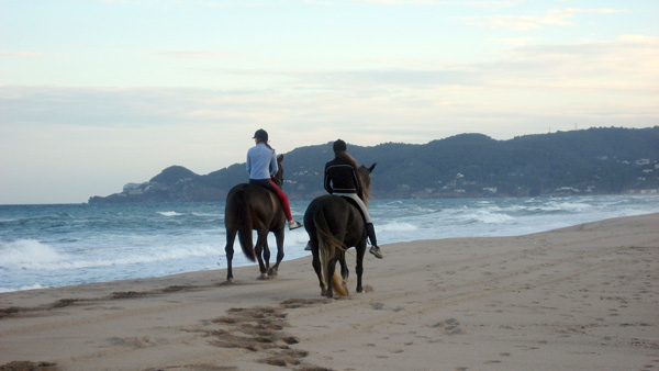 Dag 3 ¡¡¡VAMOS A LA PLAYA !!! Efter en tidigast start travar ni era hästar 1 km ner till stranden. Rosasbuktens långa kurva sträcker sig framför er, kilometervis av gyllene sand. Här njuter ni av utmärkta galopper och galopper på stranden. Efter strandritten beger ni er inåt landet igen efter floden Fluviá, förbi ett fågelskyddsområde där ni kan se flockar av flyttfåglar. Terrängen är platt med massor av risfält