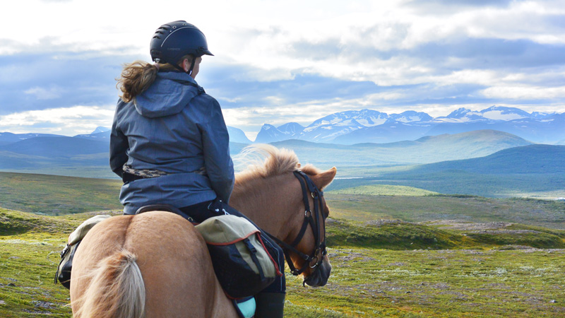 En flerdagarstur där du får uppleva fjällen från hästryggen. På denna tur övernattar du bekvämt inomhus och serveras mat med lokal prägel. Efter en dag på hästryggen och tre-rätters middag erbjuds bastubad. Ni rider dagsturer både på fjället och i dalgången med en vidunderlig utsikt över Kebnekaisefjällen. Ni rider både efter stigar, bredare leder och i obanad terräng, så ni kan variera tempot på ridningen.
