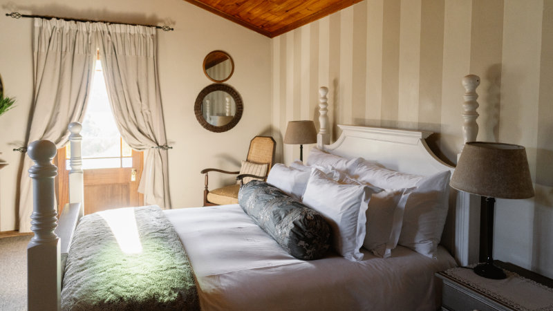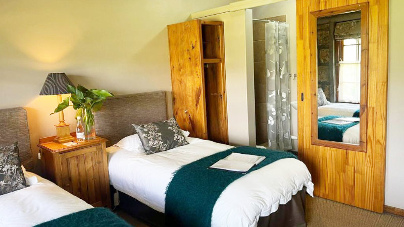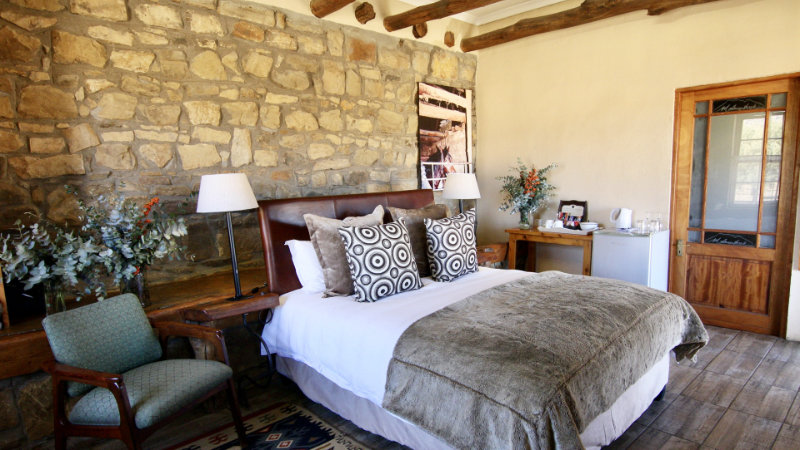 Lodgen har 16 individuellt dekorerade rum med eget badrum, omsorgsfullt utformade för att spegla regionens naturliga skönhet och arv. Sandstensväggar, trädetaljer och subtila antika inslag skapar en varm och hemtrevlig atmosfär. Varje rum har utsikt mot bergen eller trädgården och öppnar ut mot reservatets ro och stillhet.