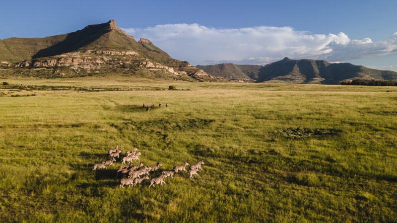 Vår privata safari lodge ligger i den östligaste delen av Free State-provinsen, precis vid foten av bergen som gränsar till Lesotho. Terrängen kännetecknas av imponerande berg och sandstensformationer samt vidsträckta öppna landskap perfekta för långa galopper. Denna safari lodge med sitt rika djurliv, inbjuder till härlig ridning i samklang med hjordar av springbock, gnu, zebra, giraff med flera vackra vilda djur.