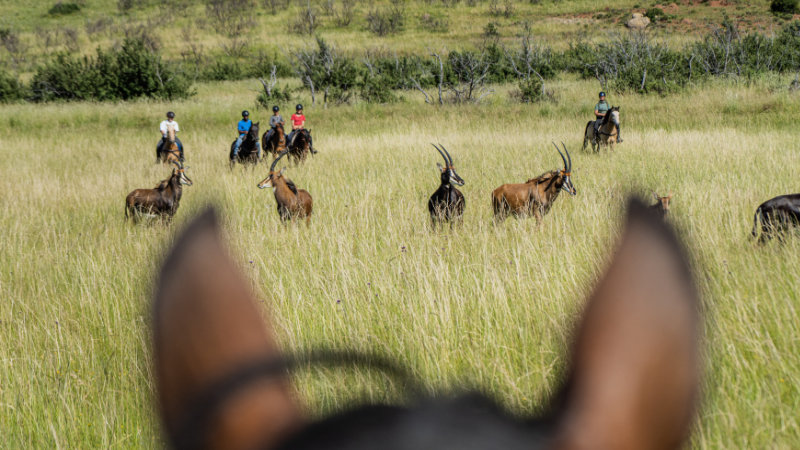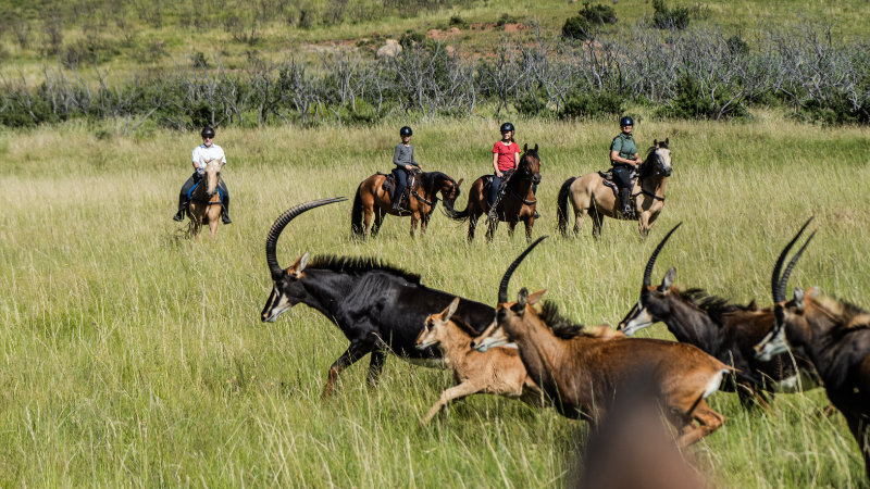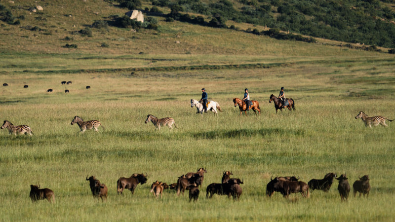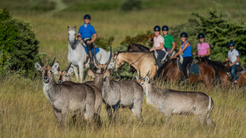 Egendomen är ett paradis för hästälskare och har två prisbelönta stuterier som föder upp South African Boerperd och arabiska fullblod, totalt cirka 200 hästar. Hästarna som är uppväxta i de vilda bergen, är extremt säkra på hoven i den stundtals krävande terrängen samt vana vid viltet vilket gör att de tryggt tar dig med ut på spännande ridturer genom skogsklädda raviner, tekniska bergsbestigningar och fartfyllda galopper i samklang med de vilda djuren.