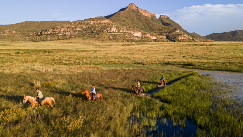 När ni rider under toppen av Sekonjela’s Hat, Witteberg-bergens näst högsta topp, upptäcker ni otroliga vyer över egendomen och mot Maluti-bergen i Lesotho. Alla unga hästar är uppvuxna i dessa berg och kan ofta ses under turen. Ni rider tillbaka till badpoolerna där du under sommarmånaderna kan ta ett uppfriskande dopp.