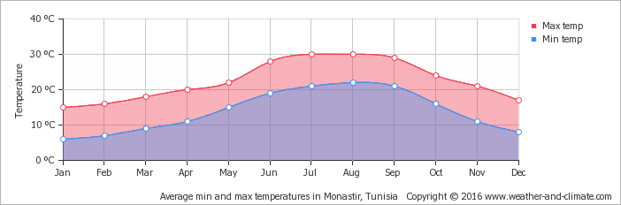 Det är sol praktiskt taget året runt. Under våren och sommaren ligger högsta dagstemperaturen på 22-30 C. Under vintern ca 15-22 C och det kan vara kallt på kvällarna.