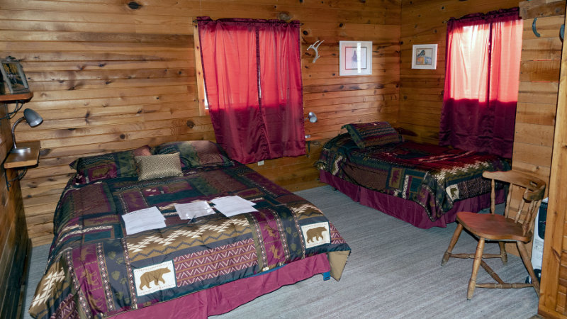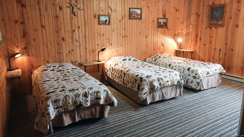 Du bor i det stora huvudhuset i western-stil. Här finns åtta sovrum, alla med eget badrum. Rummen är tvåbäddsrum, singel (för ett tillägg) eller dubbelrum. Det finns också en fristående stuga för två med eget badrum för par som vill ha mer avskildhet. Hela lodgen är byggd helt i trä och alla rum är mycket bekväma. Sängkläder, handdukar och hårtorkar finns.