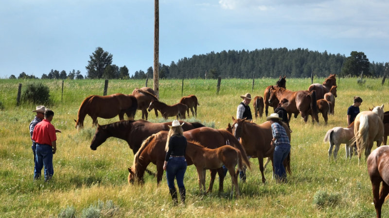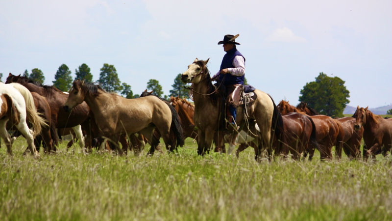 Sen är det dags att träffa hästarna. Cowboys samlar in hästarna i korallen där varje gäst tilldelas en lämplig häst. Under din vistelse får du chansen att prova flera hästar och hitta din favorit. Du kommer att rida ca 3-4 timmar på morgonen, återvända för en god lunch och rida igen på eftermiddagen i ytterligare 3-4 timmar.